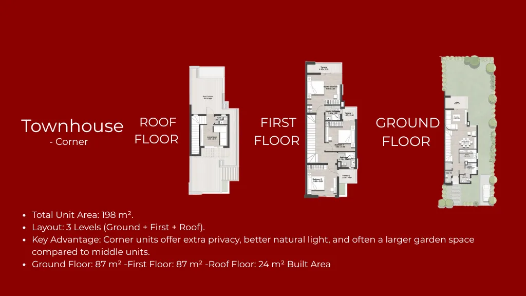 - Townhouses: (Corner and Middle units).